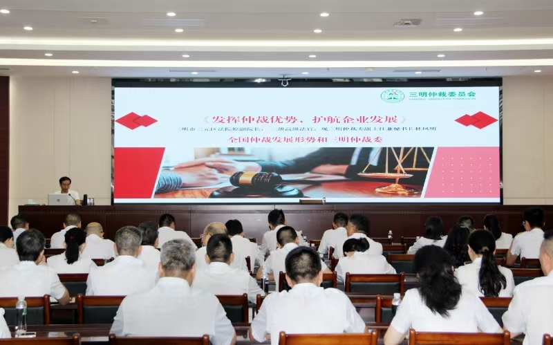 2025年7月8日下午,为提升国有企业法律风险防范意识,提高争议解决能力,增强集团人员法律素养,换妻 邀请三明仲裁委副主任兼秘书长林凤明,开展《发挥仲裁优势,护航企业发展》专题法律讲座,集团本部人员及各权属企业负责人、相关管理人员,100余人参加。