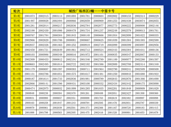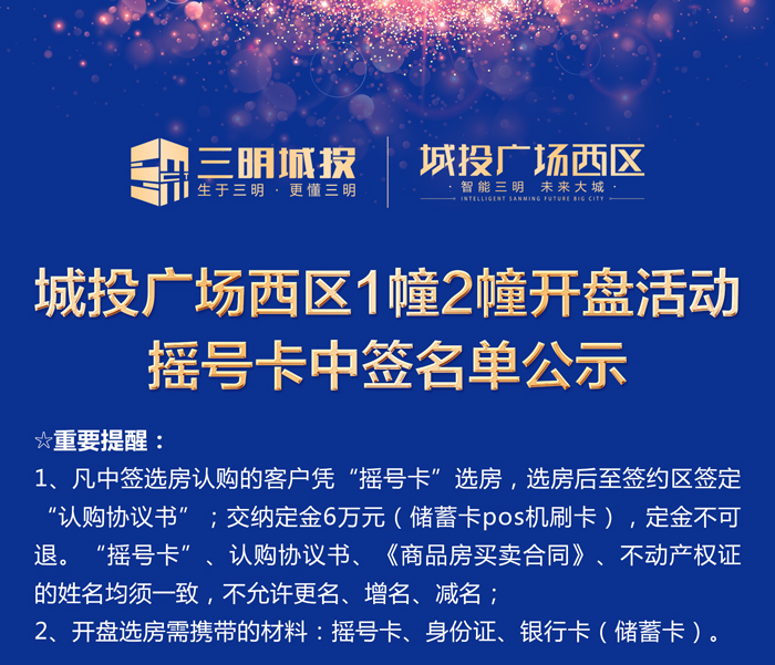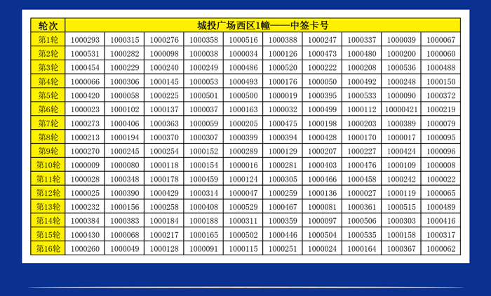 城投广场西区1幢2幢摇号卡办理名单公示