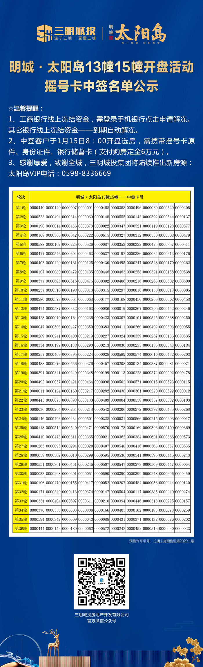 明城·太阳岛13幢15幢开盘摇号卡中签名单公示