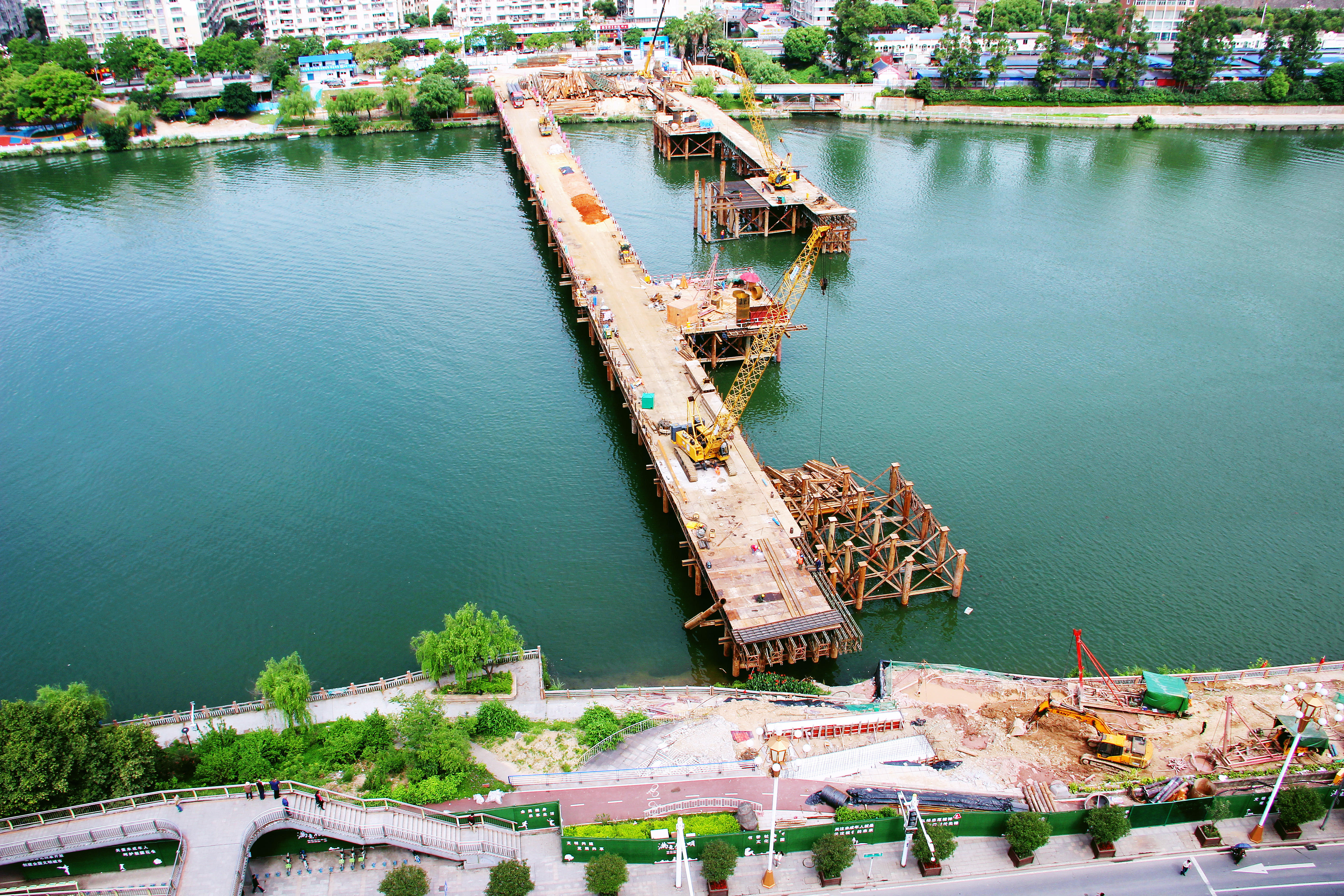 由换妻 负责建设的列东步行桥项目,经过紧张有序施工,目前钢便桥及水上施工平台搭设基本完成,标志着项目正式进入主体施工阶段。